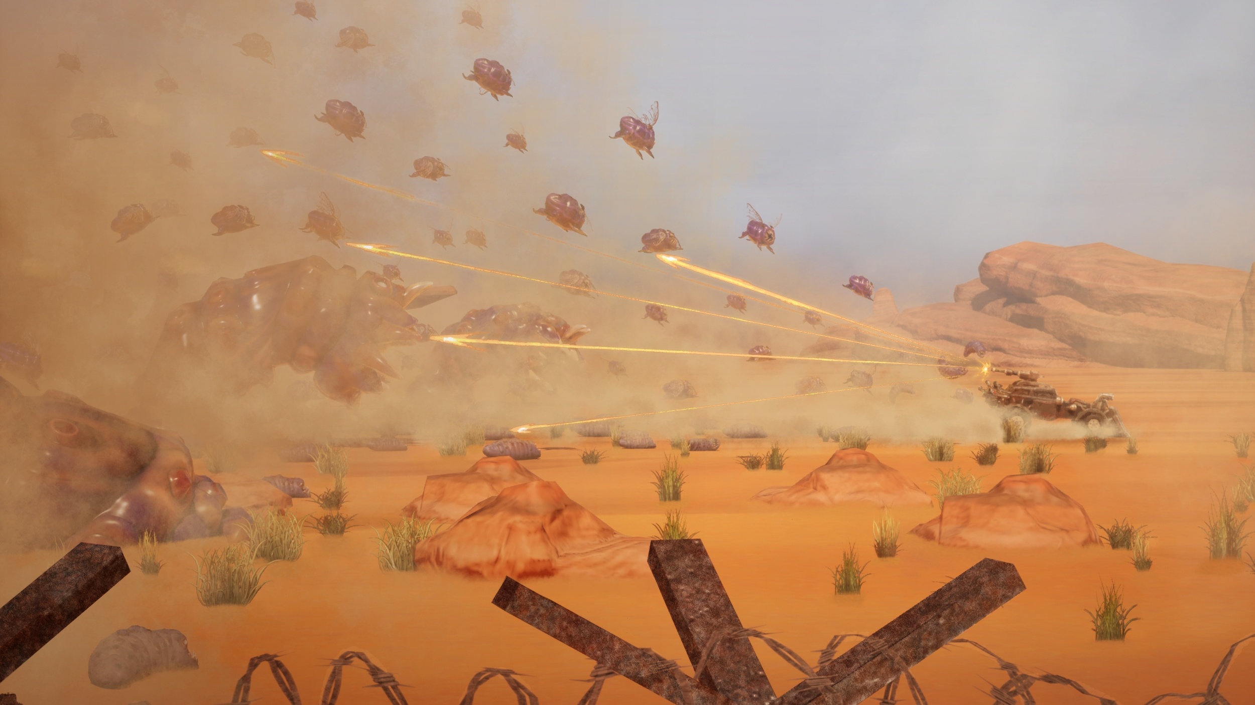 Dust Devil is a post-apocalyptic action rogue-lite game - featuring hostile desert landscapes, high octane vehicular combat, and swarms of mutant creatures. Build and customise your own armoured vehicle with an arsenal of weapons and venture into a deadly radioactive wasteland in search of valuable resources hidden beneath the sands.