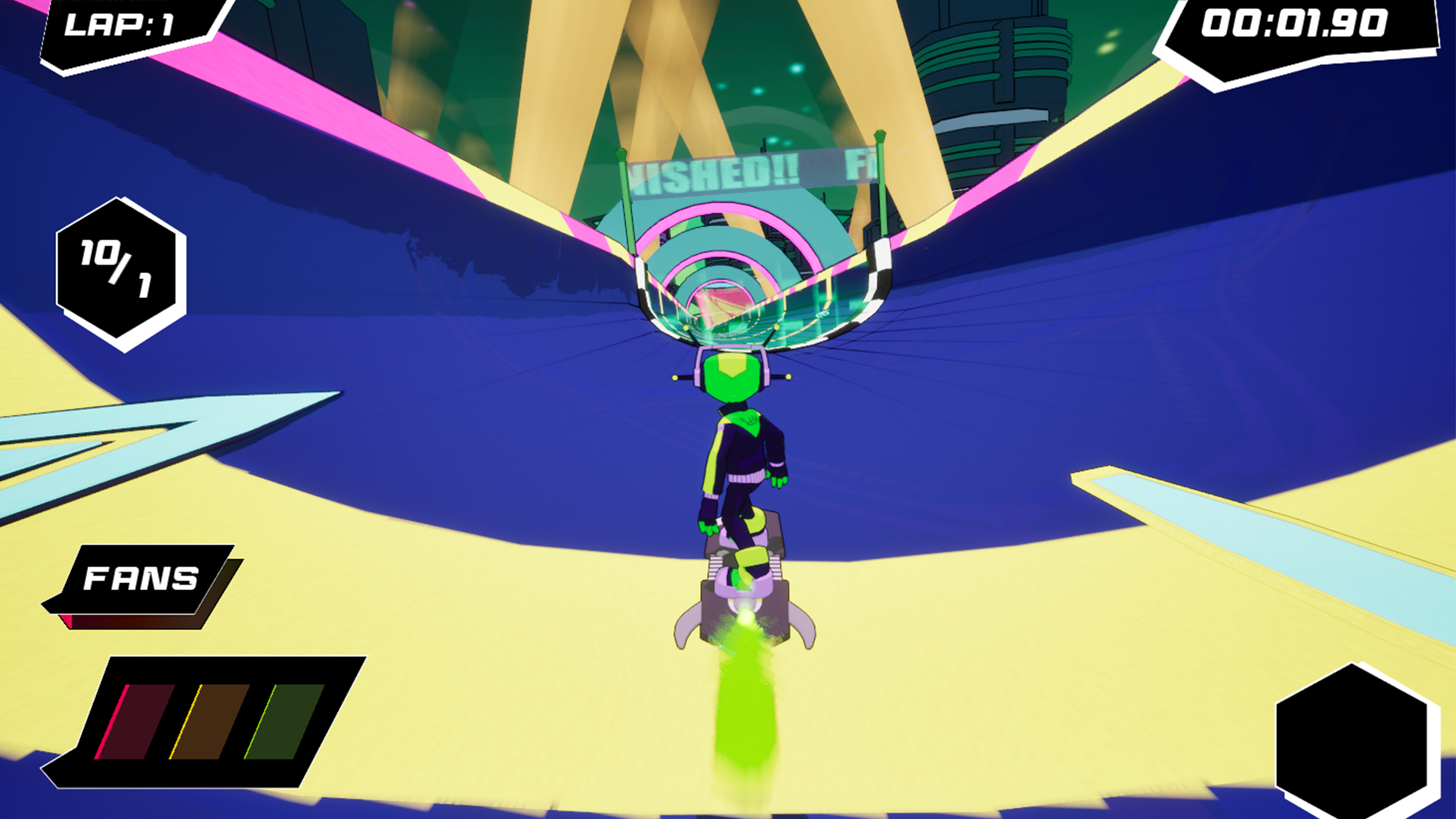 Horizon Riders is a fast-paced racing game. Express yourself by selecting your skater and customizing your ride. Surprise your competitors as you engage your preselected upgrades mid-race! Entertain the masses as the unique high-speed tracks challenge racer's maneuverability!