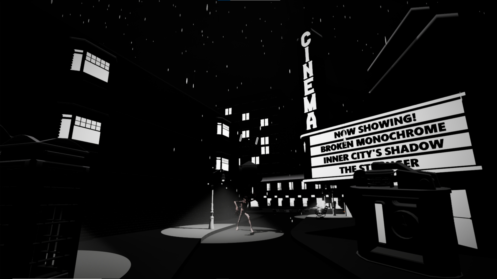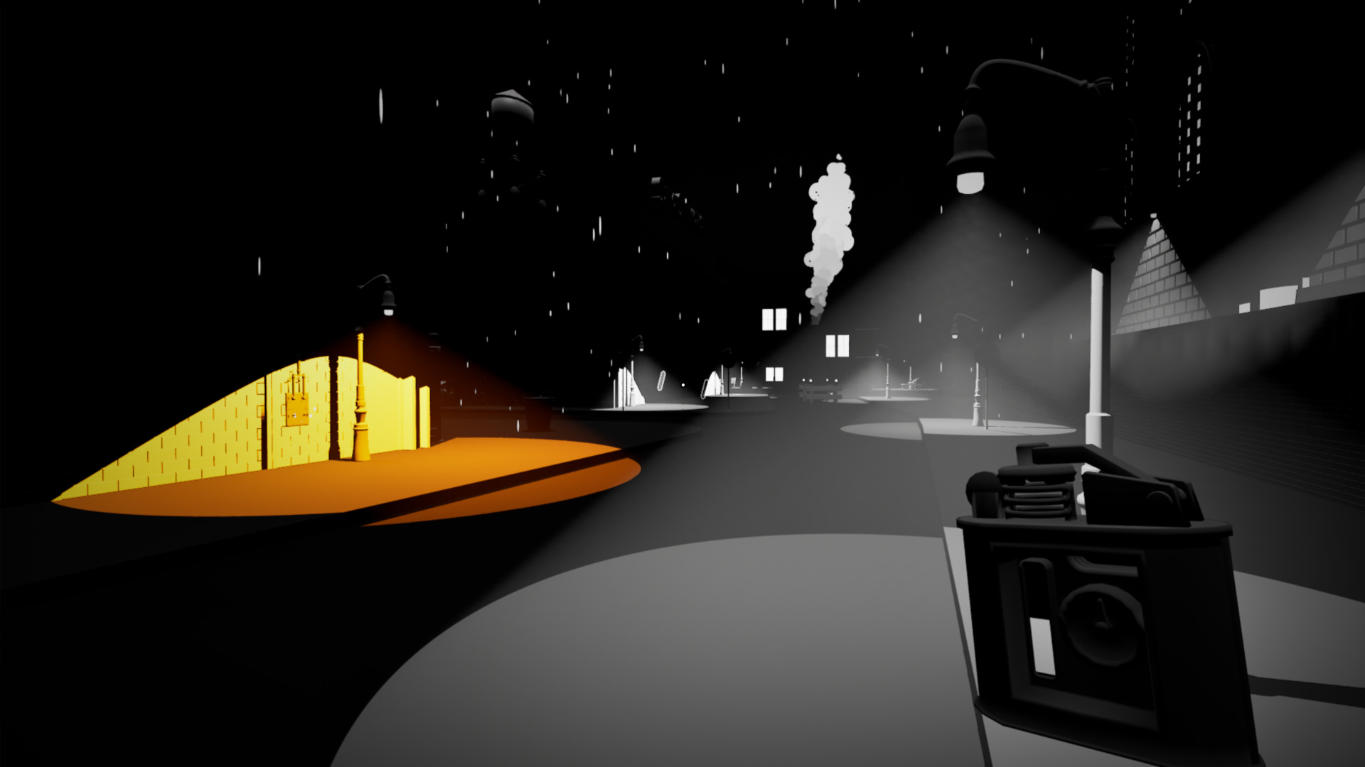 The City’s Shadow is a first-person atmospheric horror game. Navigate an oppressive city as you manage your dread of the danger lurking in darkness. Stay in the light by manipulating illumination with the Unlighter. Try to make it home without drawing the attention of The Shadow.