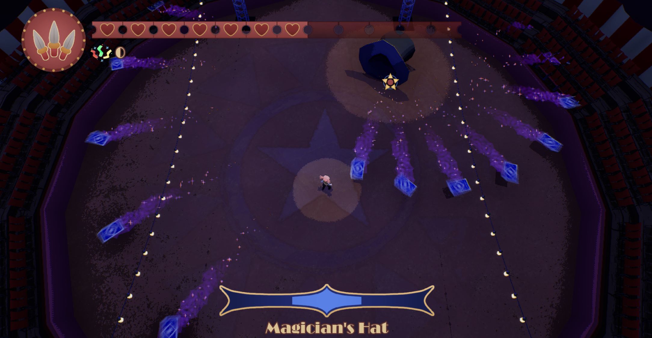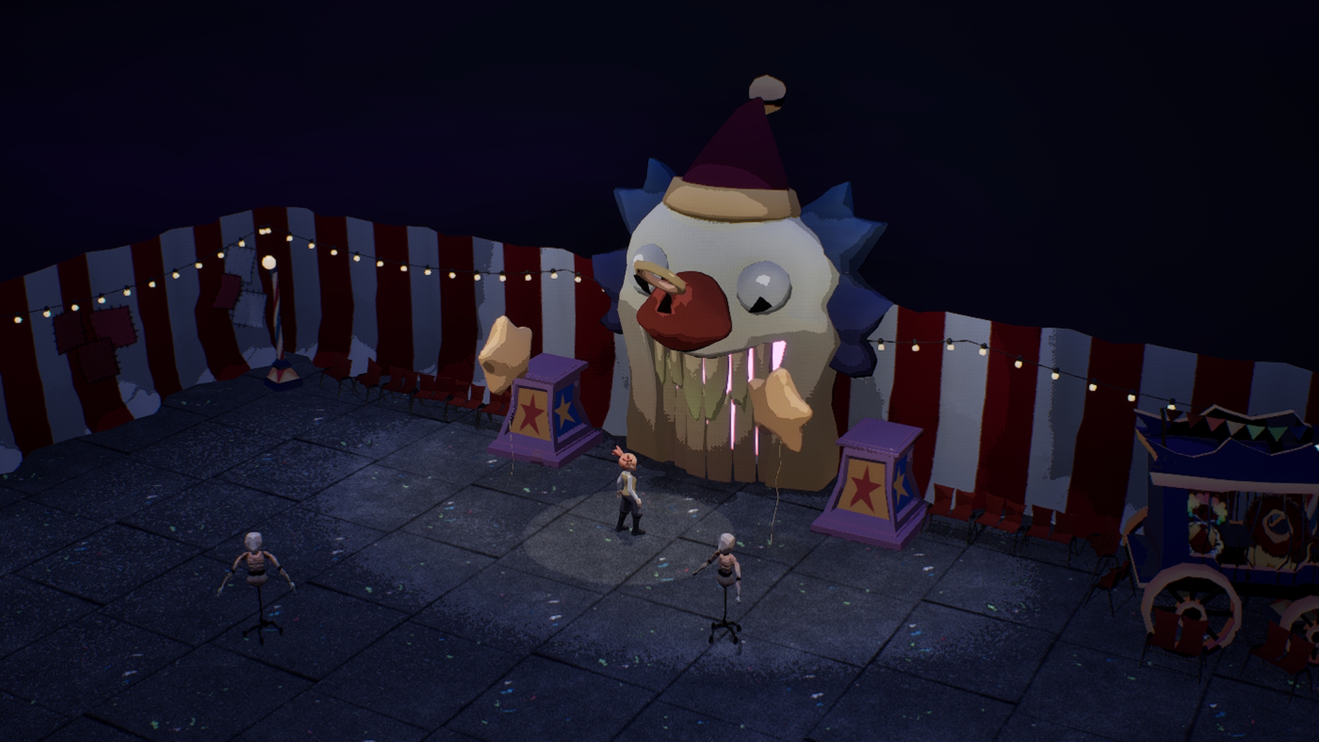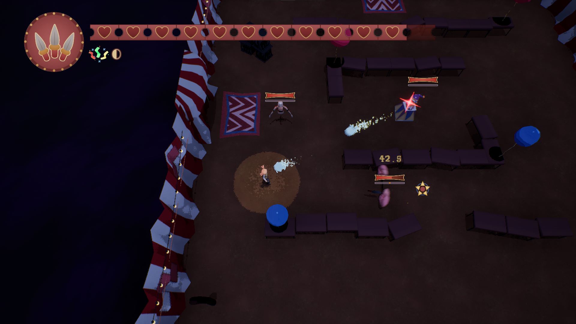 TRIX is a third-person roguelike. Trapped in a shifting big top, you play as Trix, a versatile performer looking to escape the circus. Use costumes to perform the abilities tied to their roles and collect powerful upgrades. Battle mischievous sentient props to escape this chaotic circus alive.