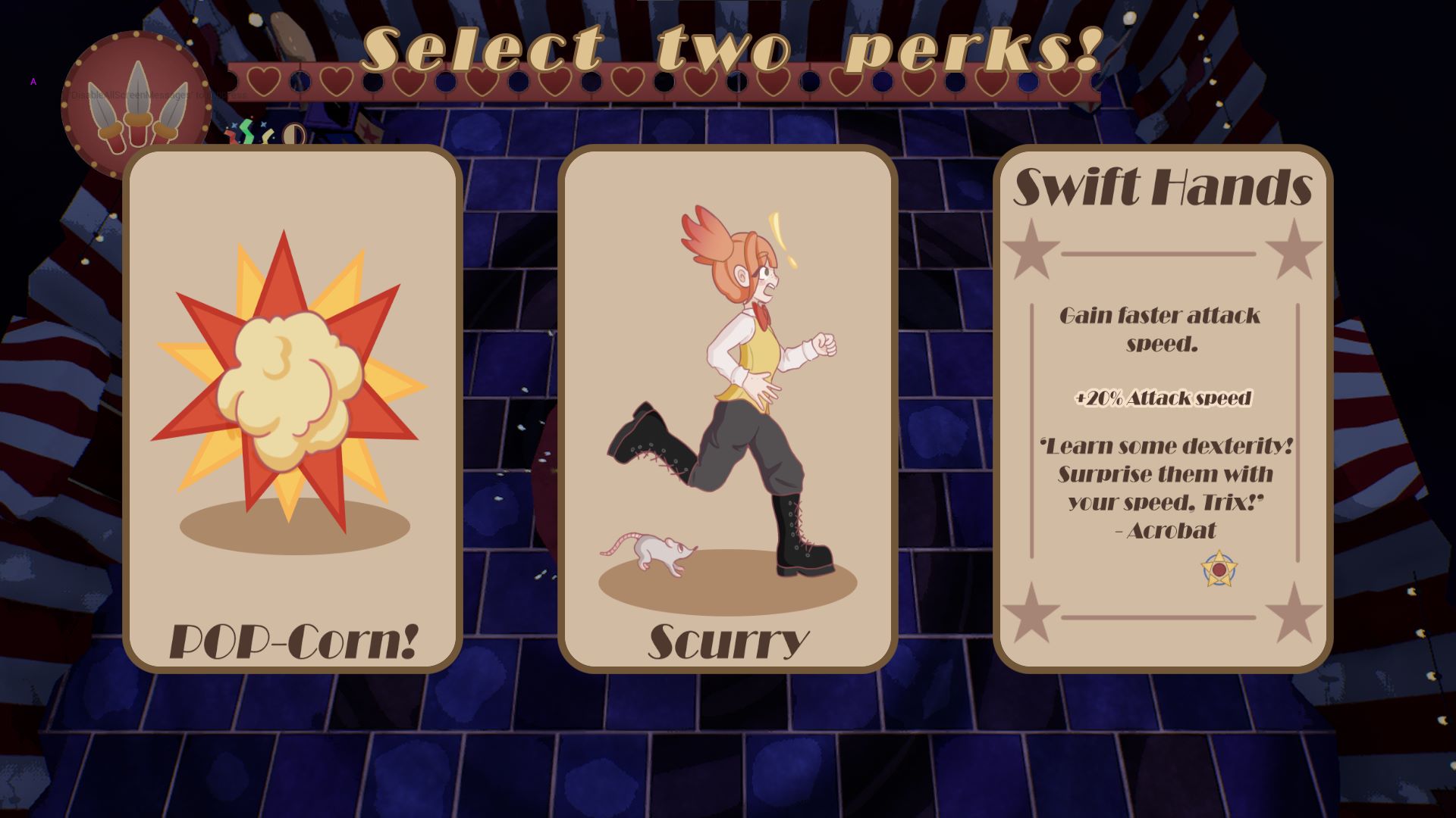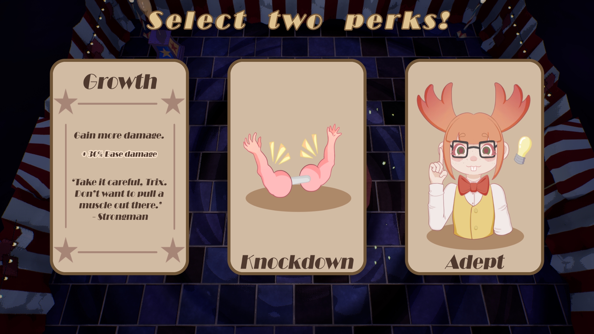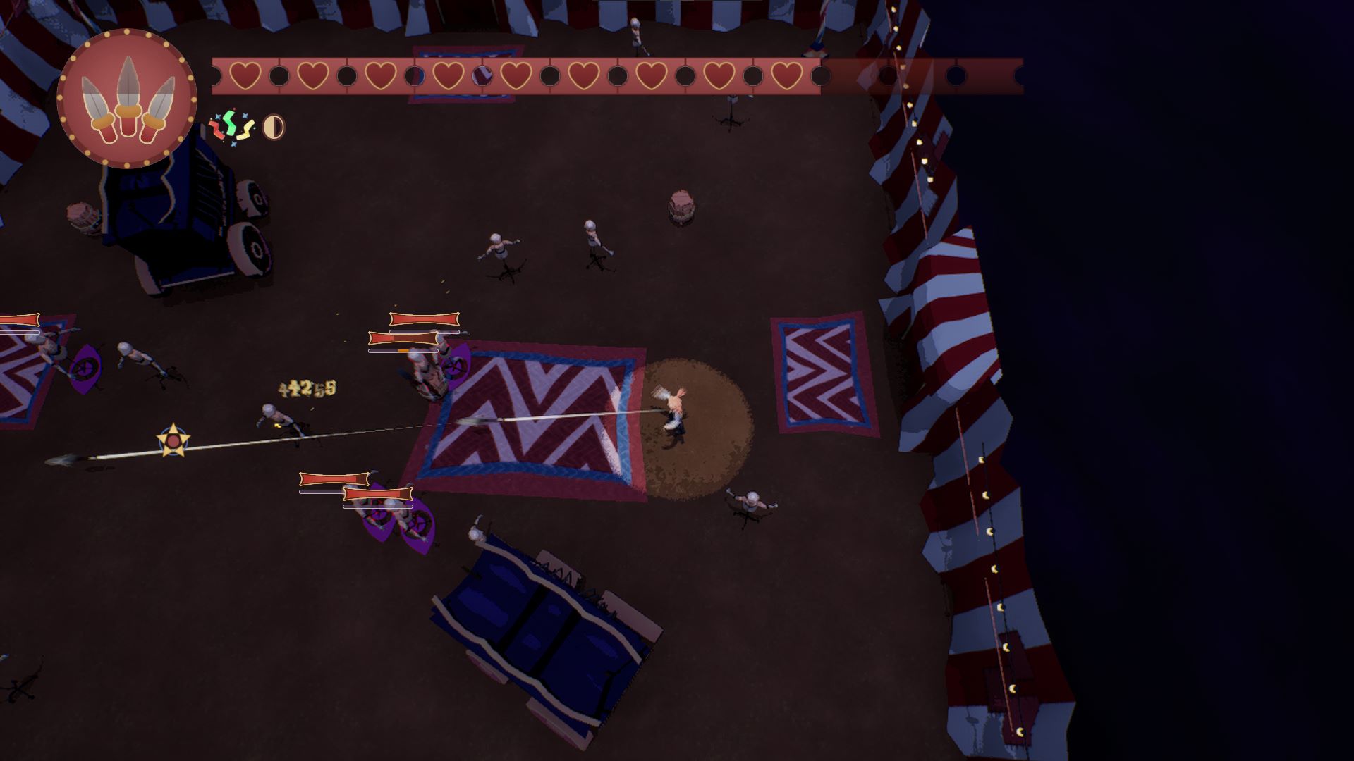 TRIX is a third-person roguelike. Trapped in a shifting big top, you play as Trix, a versatile performer looking to escape the circus. Use costumes to perform the abilities tied to their roles and collect powerful upgrades. Battle mischievous sentient props to escape this chaotic circus alive.